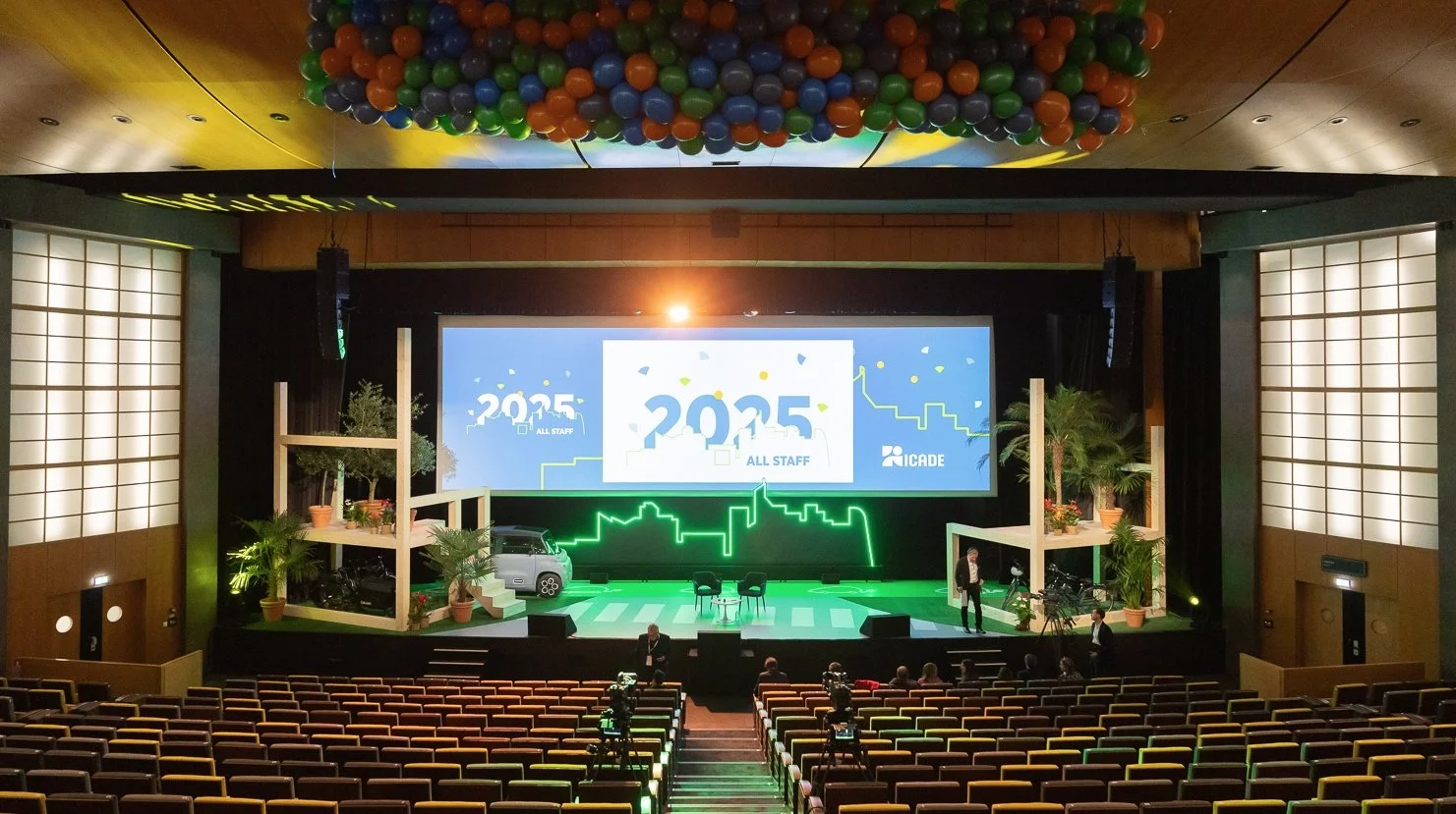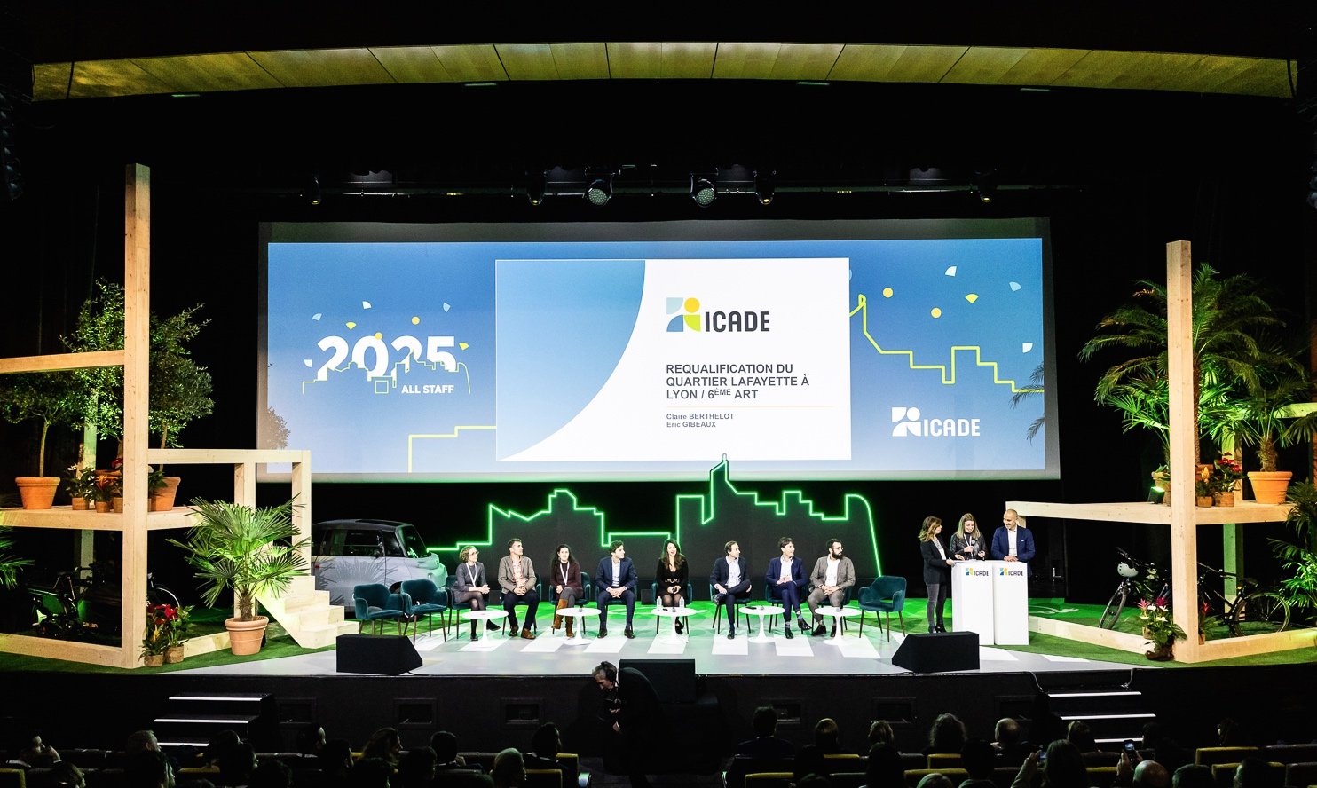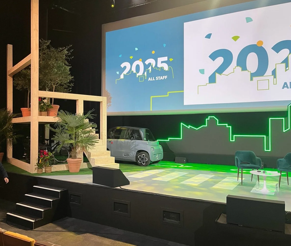 icade PARIS LA défense Scénographie salle plénière. Plateau Talk show Projection grand écran fond de scène